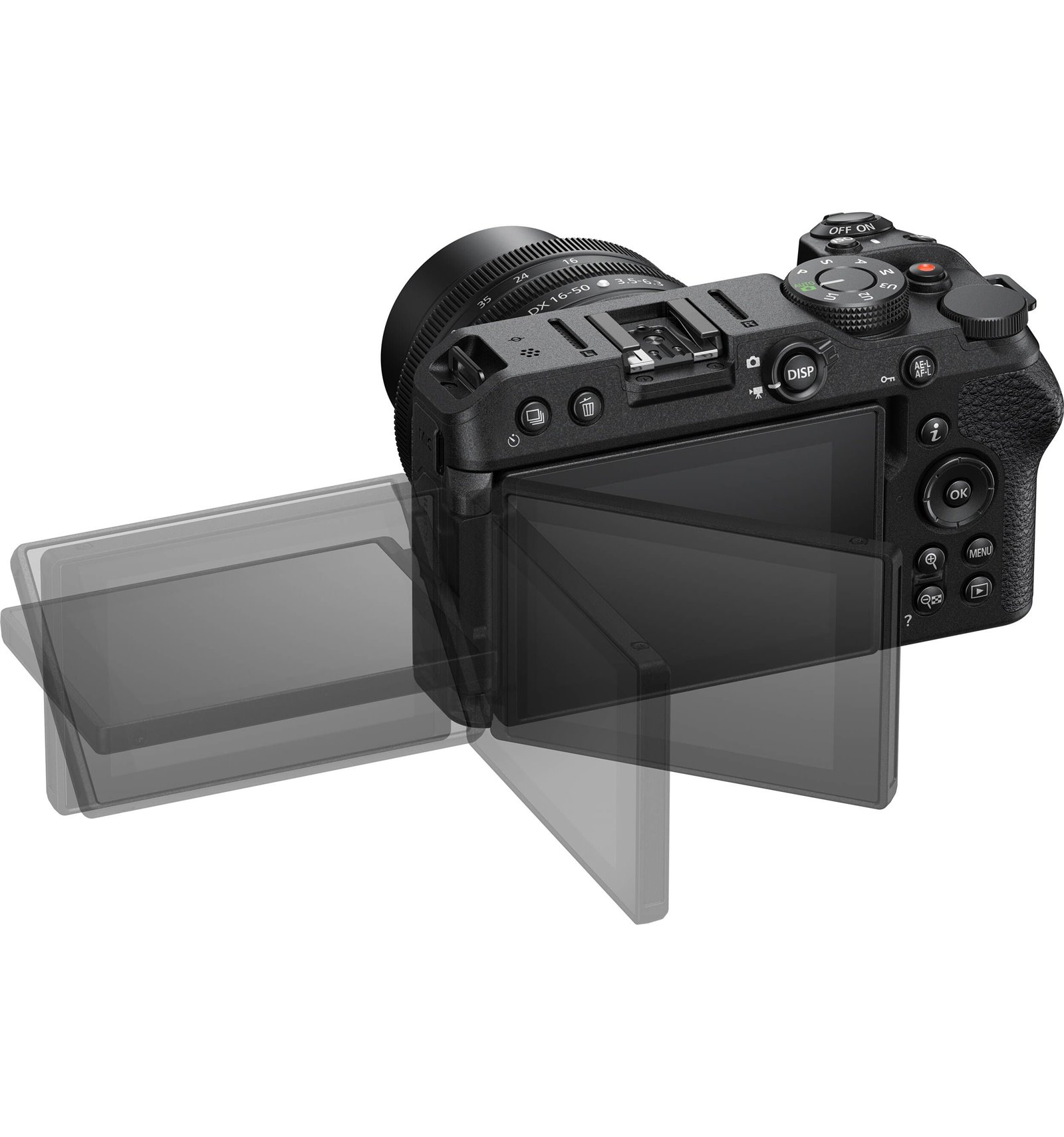 Il design compatto del corpo incorpora uno schermo LCD ad angolo libero da 3,0" con 1,04 m di punti. Questo schermo posizionabile può essere rivolto in avanti per composizioni selfie accurate e può chiudersi verso l'interno per proteggere lo schermo da graffi e impronte digitali quando non è in uso.